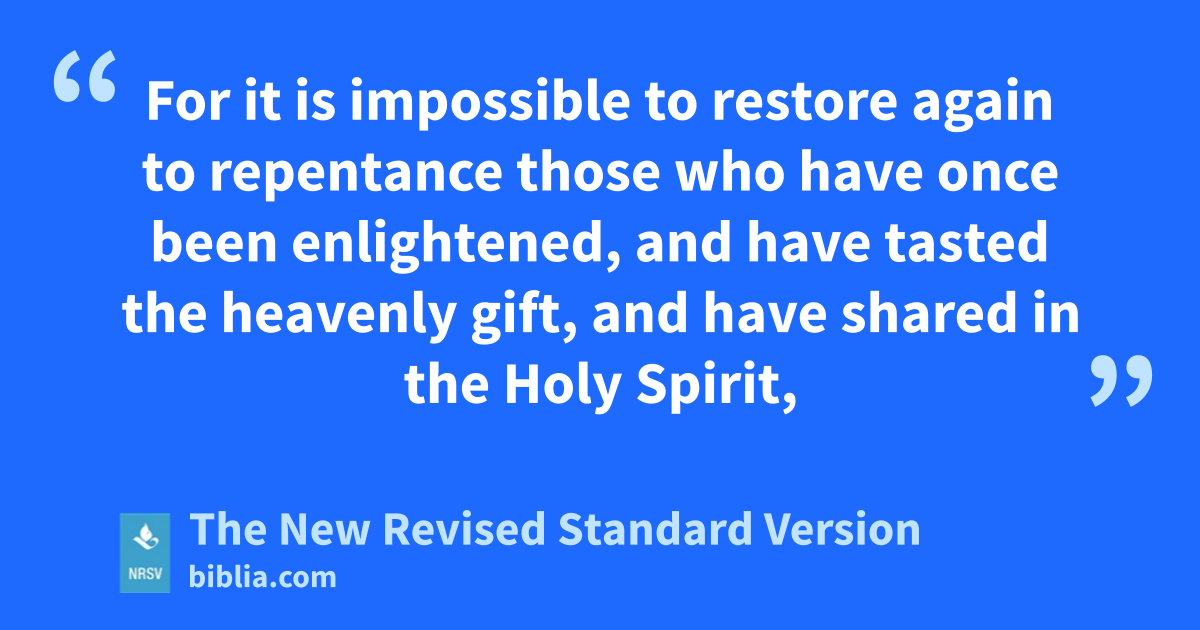 For it is impossible to restore again to repentance those who have once been enlightened, and have tasted the heavenly gift, and have shared in the Holy Spirit,