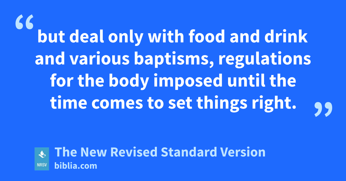 but deal only with food and drink and various baptisms, regulations for the body imposed until the time comes to set things right.