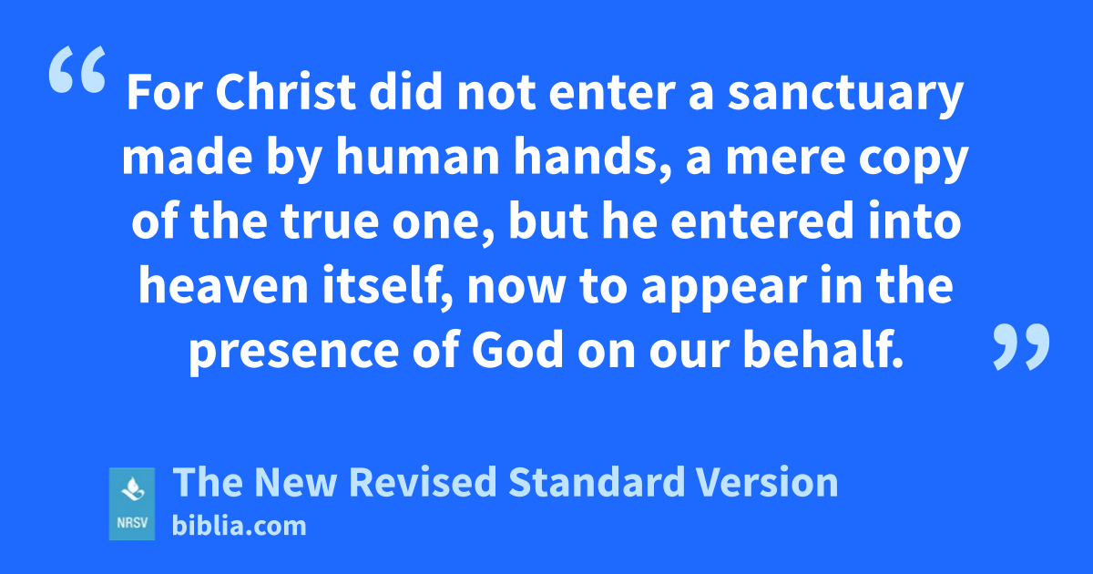 For Christ did not enter a sanctuary made by human hands, a mere copy of the true one, but he entered into heaven itself, now to appear in the presence of God on our behalf.