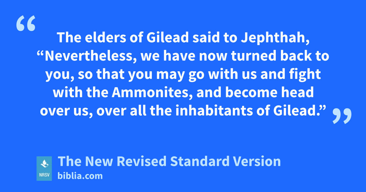 The elders of Gilead said to Jephthah, “Nevertheless, we have now turned back to you, so that you may go with us and fight with the Ammonites, and become head over us, over all the inhabitants of Gilead.”