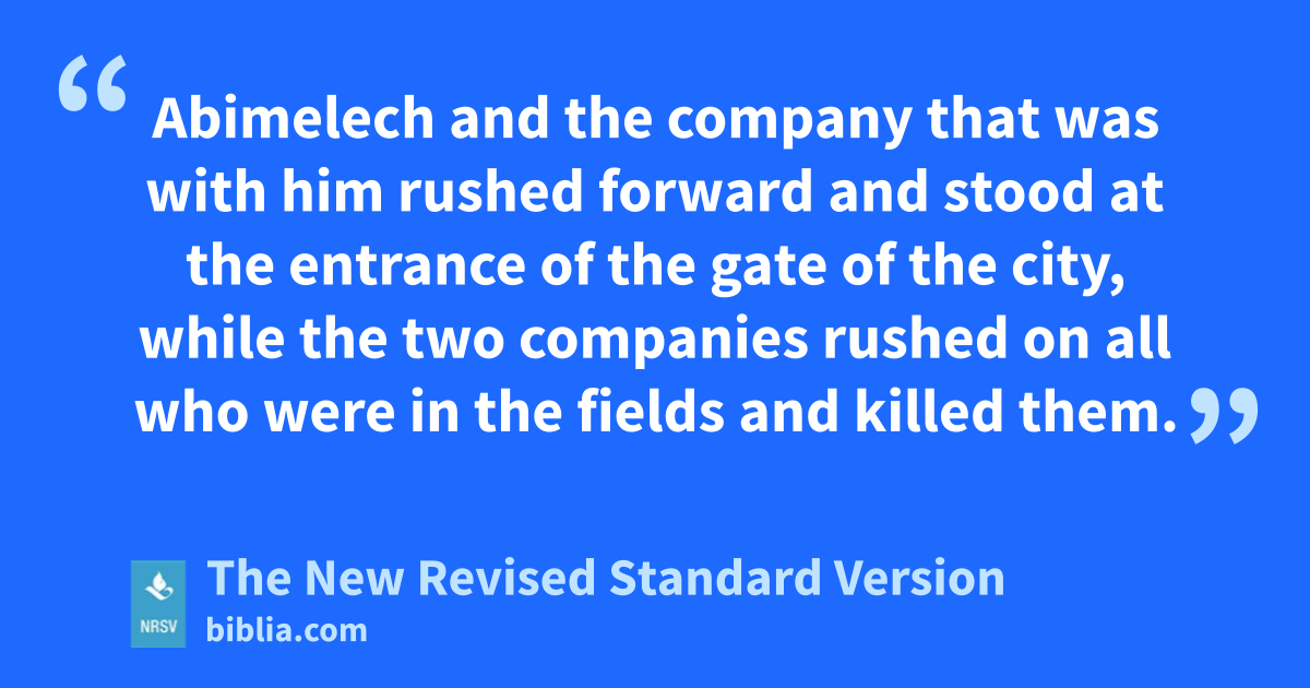 Abimelech and the company that was with him rushed forward and stood at the entrance of the gate of the city, while the two companies rushed on all who were in the fields and killed them.
