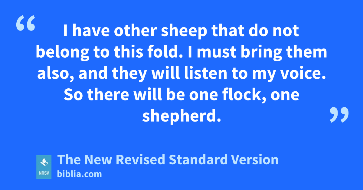 I have other sheep that do not belong to this fold. I must bring them also, and they will listen to my voice. So there will be one flock, one shepherd.