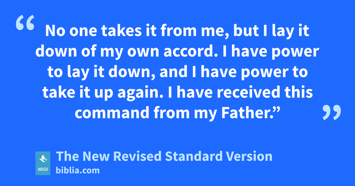 No one takes it from me, but I lay it down of my own accord. I have power to lay it down, and I have power to take it up again. I have received this command from my Father.”