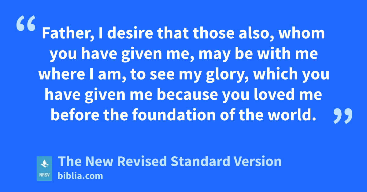 Father, I desire that those also, whom you have given me, may be with me where I am, to see my glory, which you have given me because you loved me before the foundation of the world.