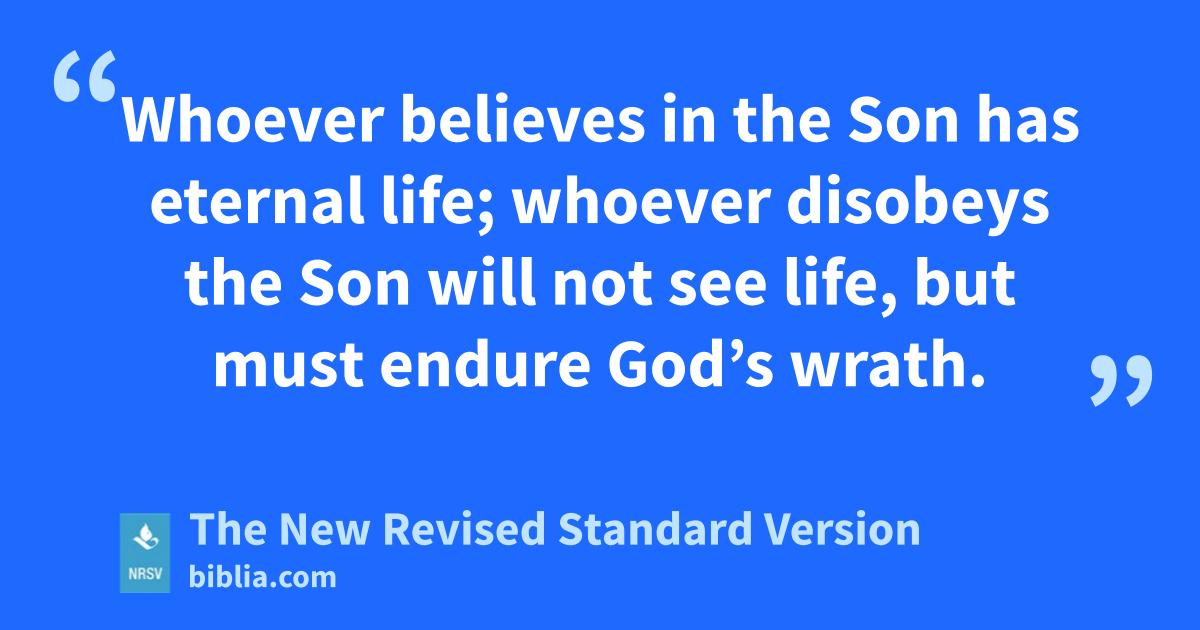 Whoever believes in the Son has eternal life; whoever disobeys the Son will not see life, but must endure God’s wrath.