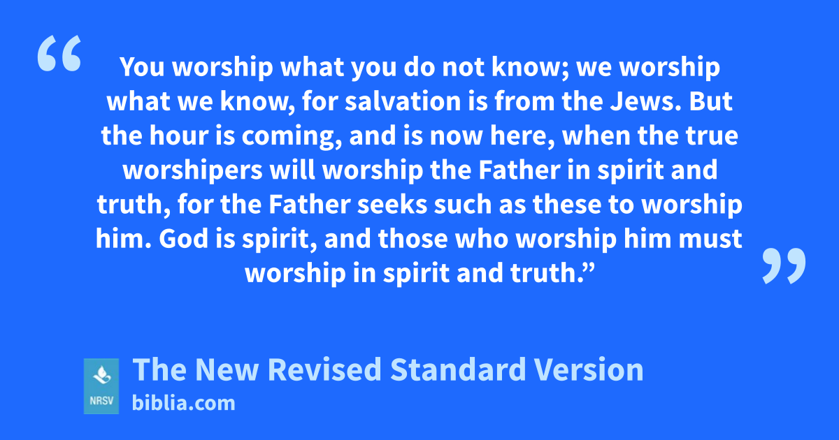 You worship what you do not know; we worship what we know, for salvation is from the Jews. But the hour is coming, and is now here, when the true worshipers will worship the Father in spirit and truth, for the Father seeks such as these to worship him. God is spirit, and those who worship him must worship in spirit and truth.”