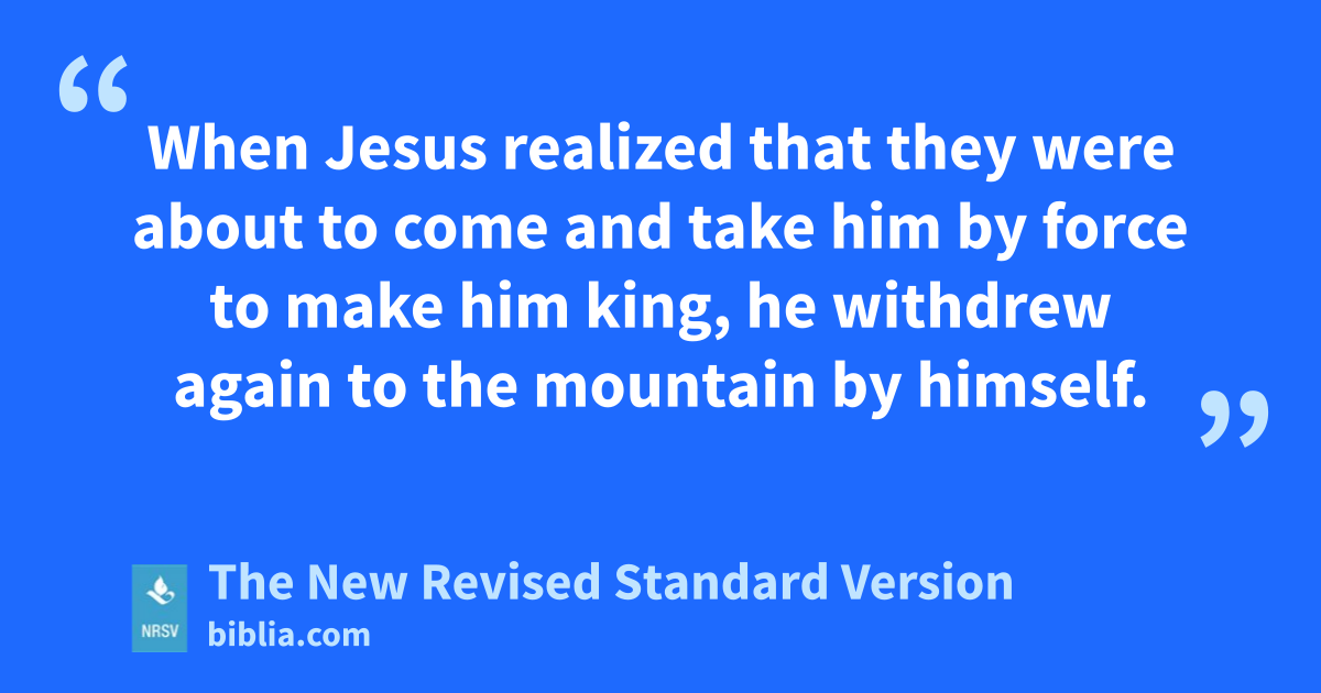 When Jesus realized that they were about to come and take him by force to make him king, he withdrew again to the mountain by himself.