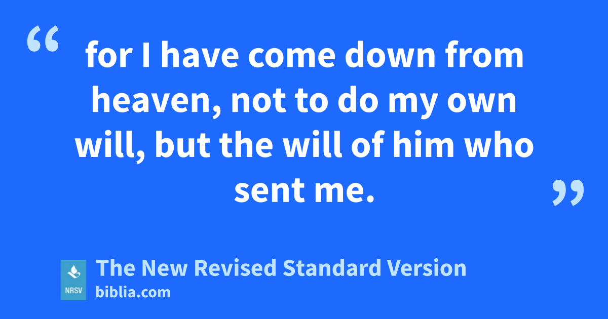 for I have come down from heaven, not to do my own will, but the will of him who sent me.