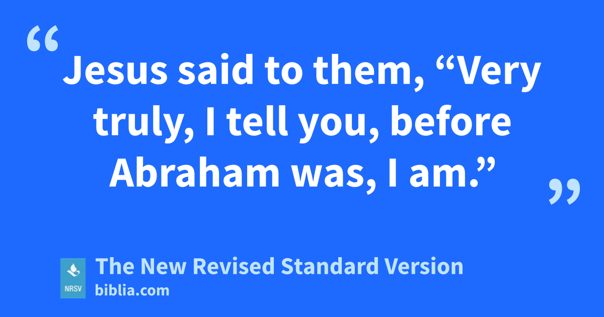 Jesus said to them, “Very truly, I tell you, before Abraham was, I am.”