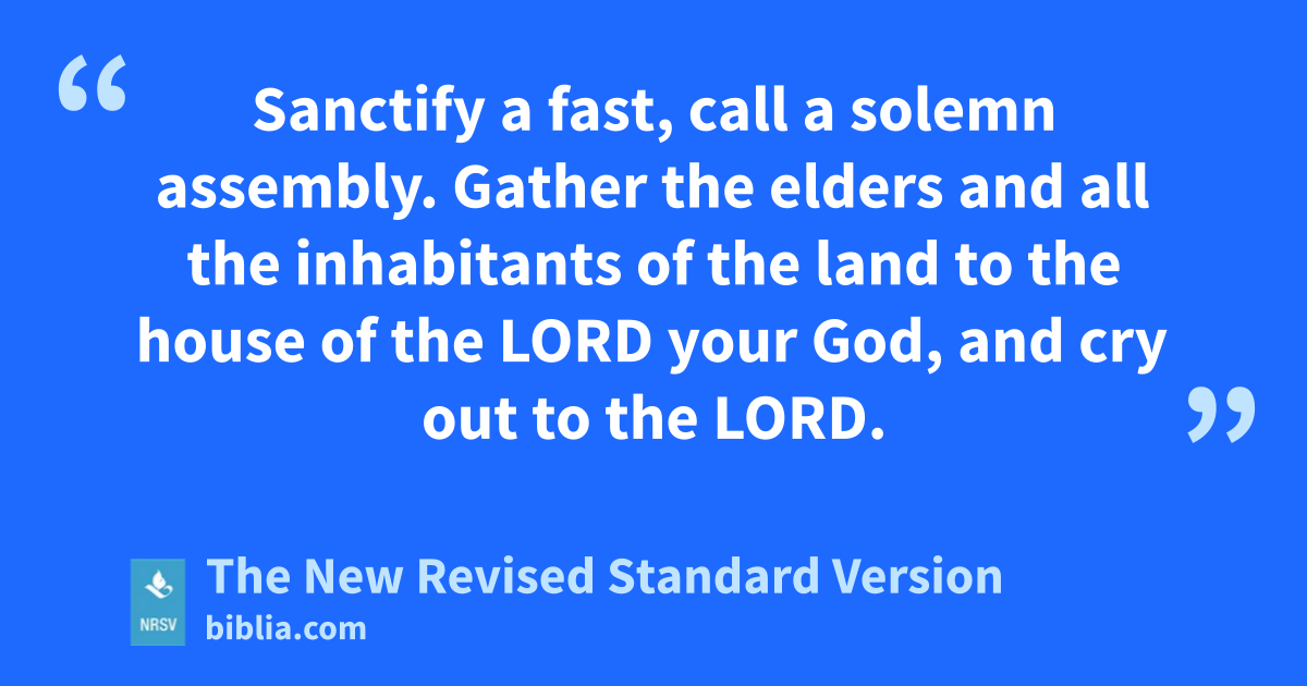 Sanctify a fast, call a solemn assembly. Gather the elders and all the inhabitants of the land to the house of the LORD your God, and cry out to the LORD.