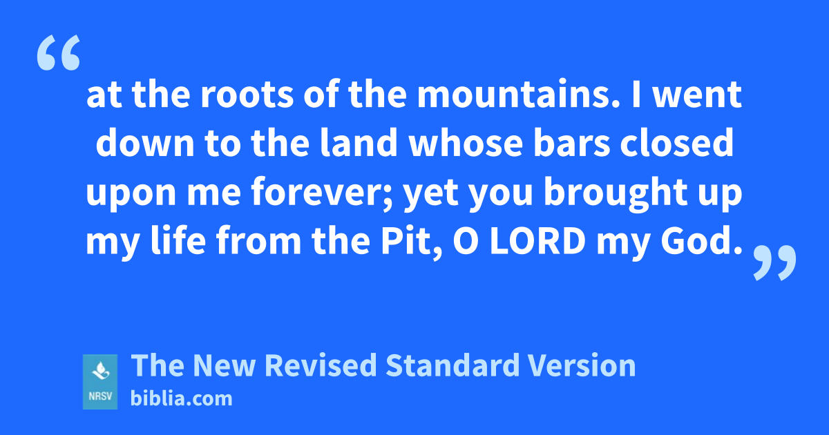 at the roots of the mountains. I went down to the land whose bars closed upon me forever; yet you brought up my life from the Pit, O LORD my God.