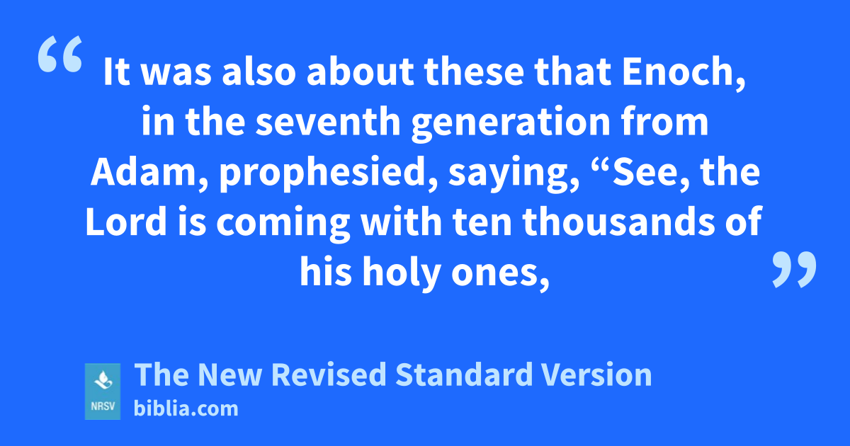 It was also about these that Enoch, in the seventh generation from Adam, prophesied, saying, “See, the Lord is coming with ten thousands of his holy ones,