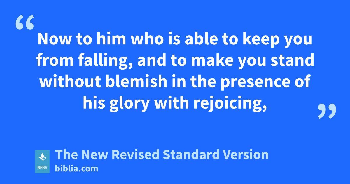 Now to him who is able to keep you from falling, and to make you stand without blemish in the presence of his glory with rejoicing,