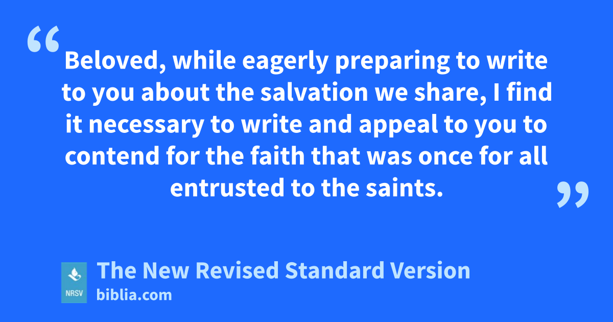 Beloved, while eagerly preparing to write to you about the salvation we share, I find it necessary to write and appeal to you to contend for the faith that was once for all entrusted to the saints.