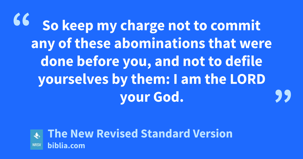 So keep my charge not to commit any of these abominations that were done before you, and not to defile yourselves by them: I am the LORD your God.