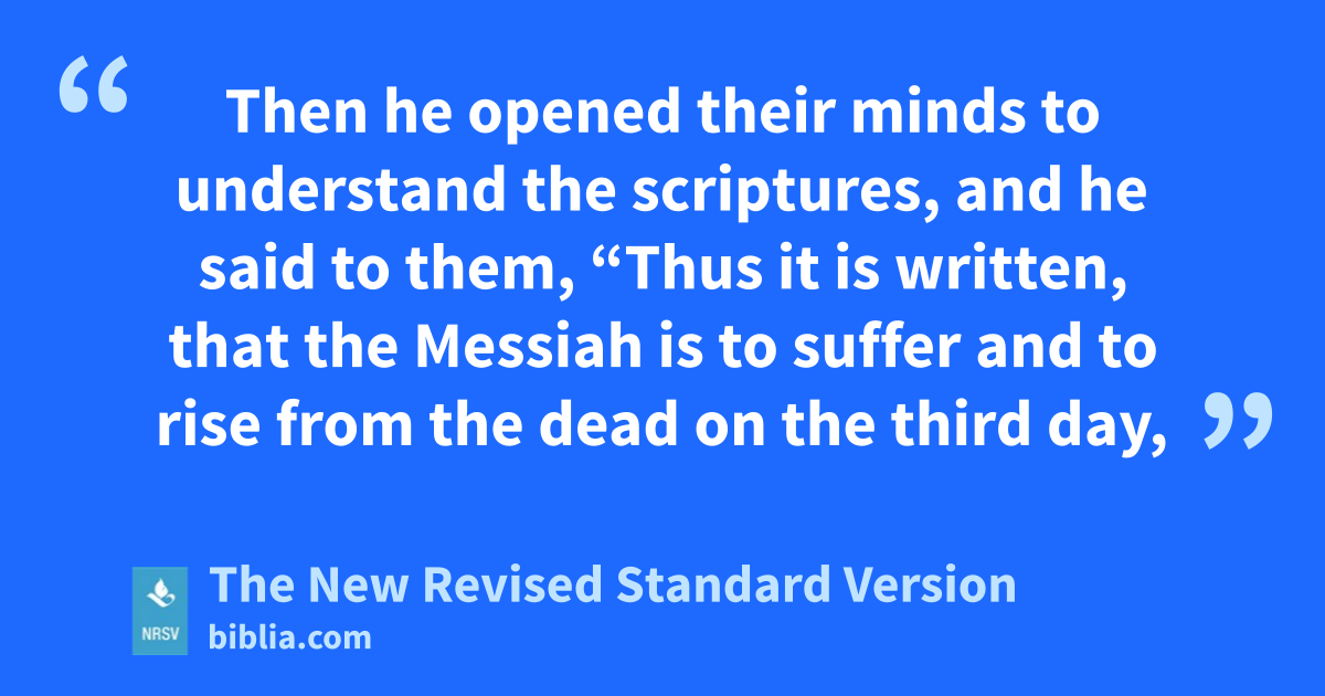 Then he opened their minds to understand the scriptures, and he said to them, “Thus it is written, that the Messiah is to suffer and to rise from the dead on the third day,