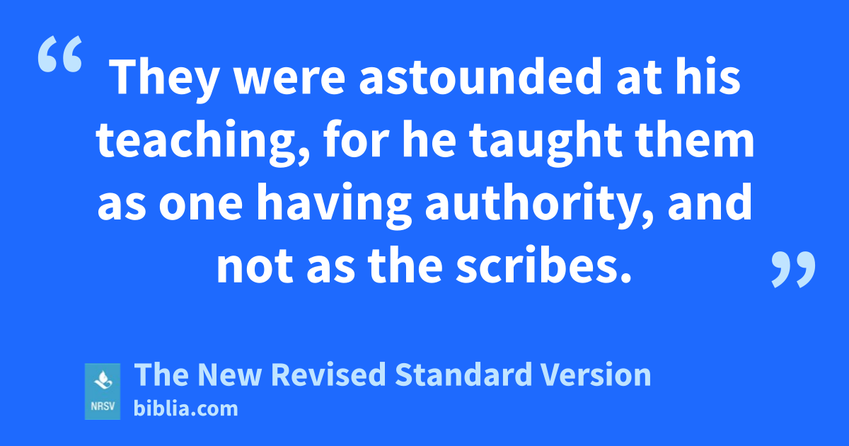 They were astounded at his teaching, for he taught them as one having authority, and not as the scribes.