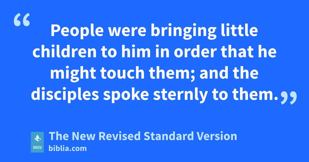 People were bringing little children to him in order that he might touch them; and the disciples spoke sternly to them.