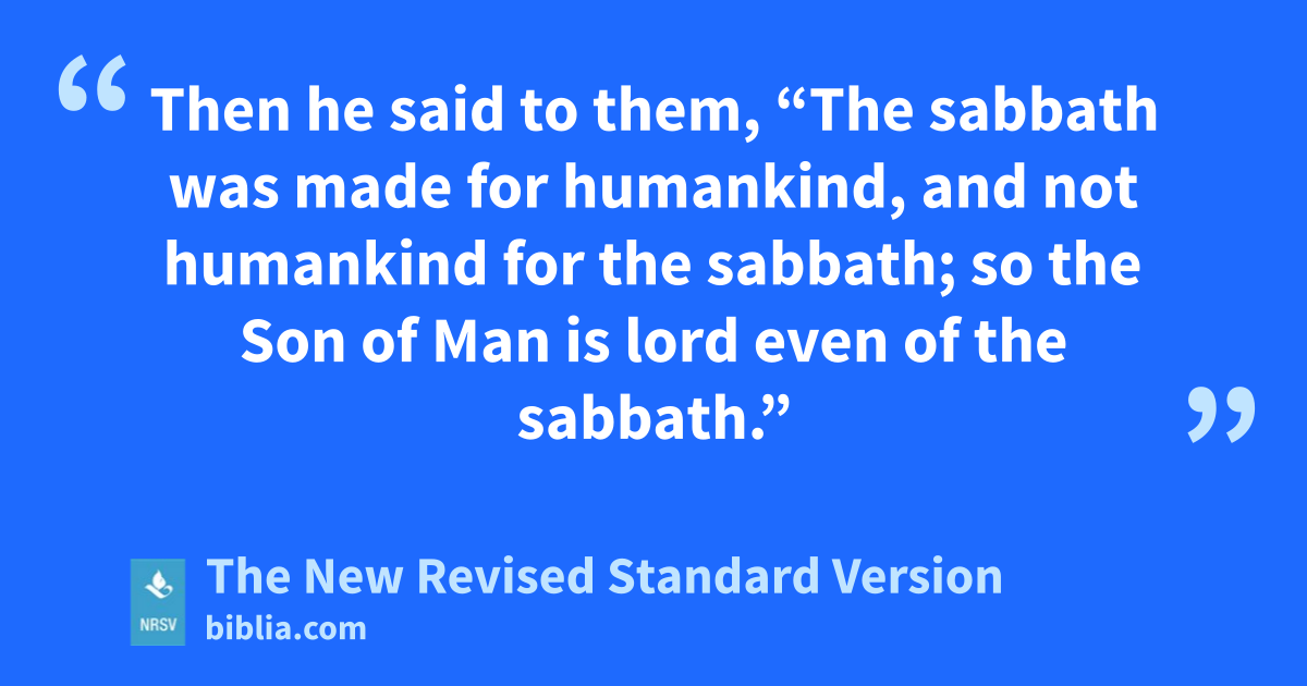 Then he said to them, “The sabbath was made for humankind, and not humankind for the sabbath; so the Son of Man is lord even of the sabbath.”