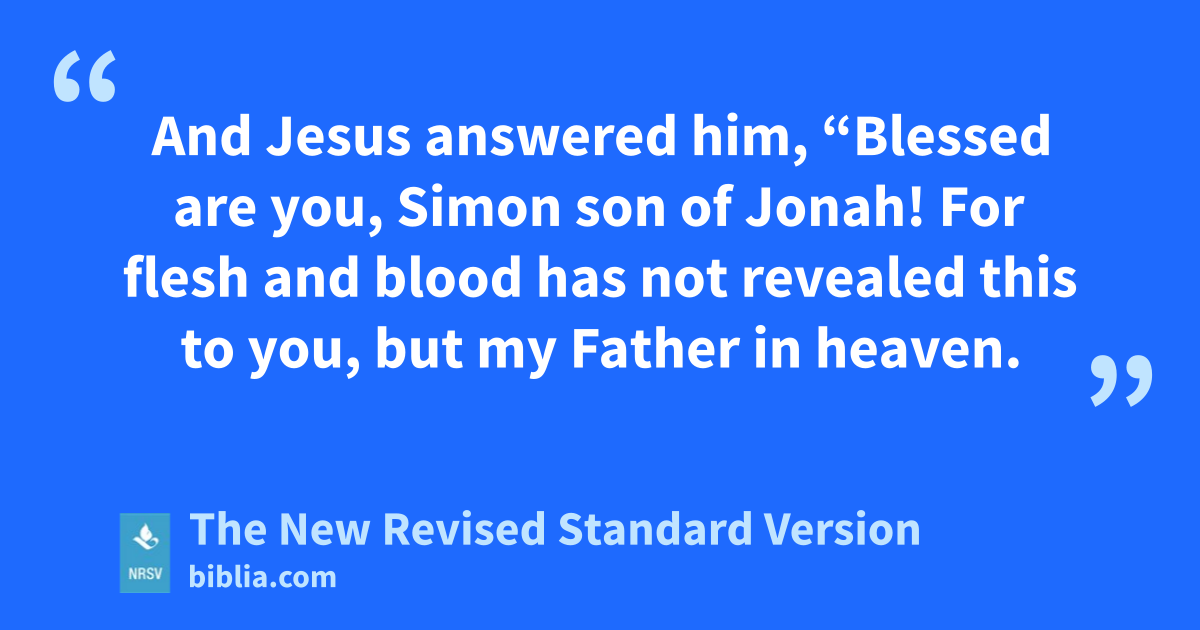 And Jesus answered him, “Blessed are you, Simon son of Jonah! For flesh and blood has not revealed this to you, but my Father in heaven.