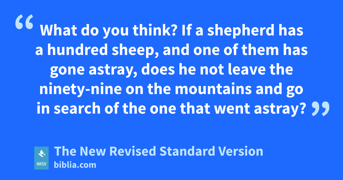 What do you think? If a shepherd has a hundred sheep, and one of them has gone astray, does he not leave the ninety-nine on the mountains and go in search of the one that went astray?
