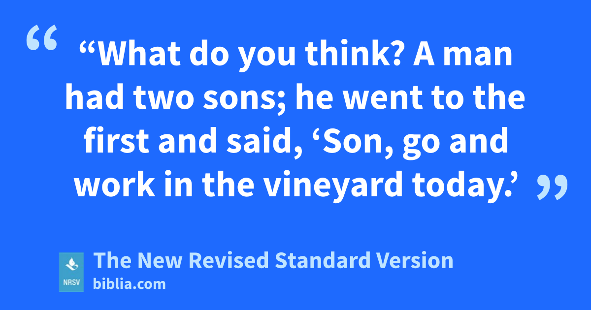 “What do you think? A man had two sons; he went to the first and said, ‘Son, go and work in the vineyard today.’