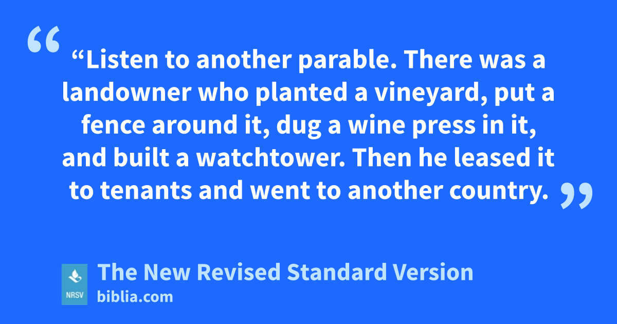 “Listen to another parable. There was a landowner who planted a vineyard, put a fence around it, dug a wine press in it, and built a watchtower. Then he leased it to tenants and went to another country.