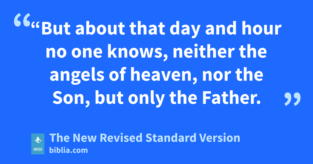 “But about that day and hour no one knows, neither the angels of heaven, nor the Son, but only the Father.