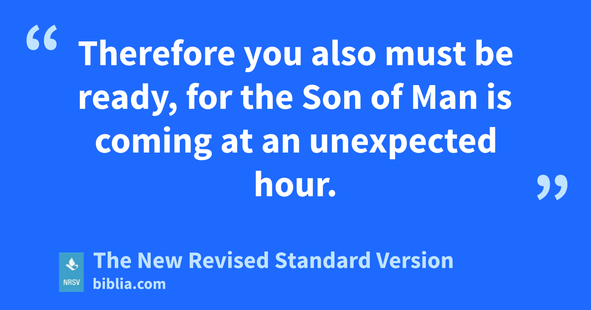 Therefore you also must be ready, for the Son of Man is coming at an unexpected hour.