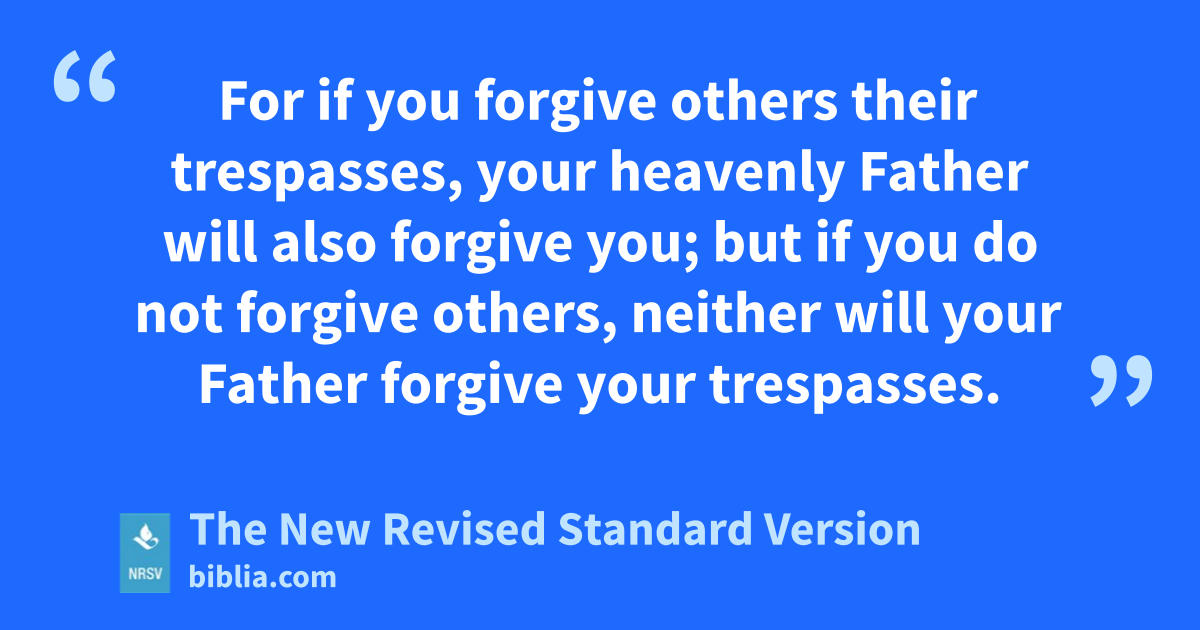 For if you forgive others their trespasses, your heavenly Father will also forgive you; but if you do not forgive others, neither will your Father forgive your trespasses.