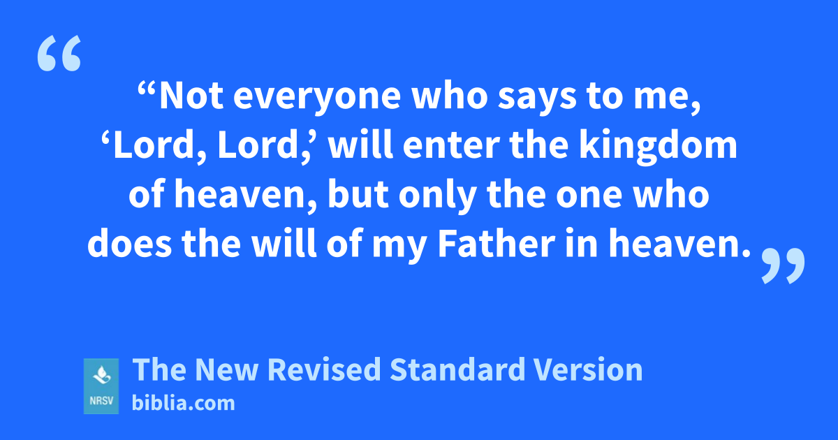 “Not everyone who says to me, ‘Lord, Lord,’ will enter the kingdom of heaven, but only the one who does the will of my Father in heaven.