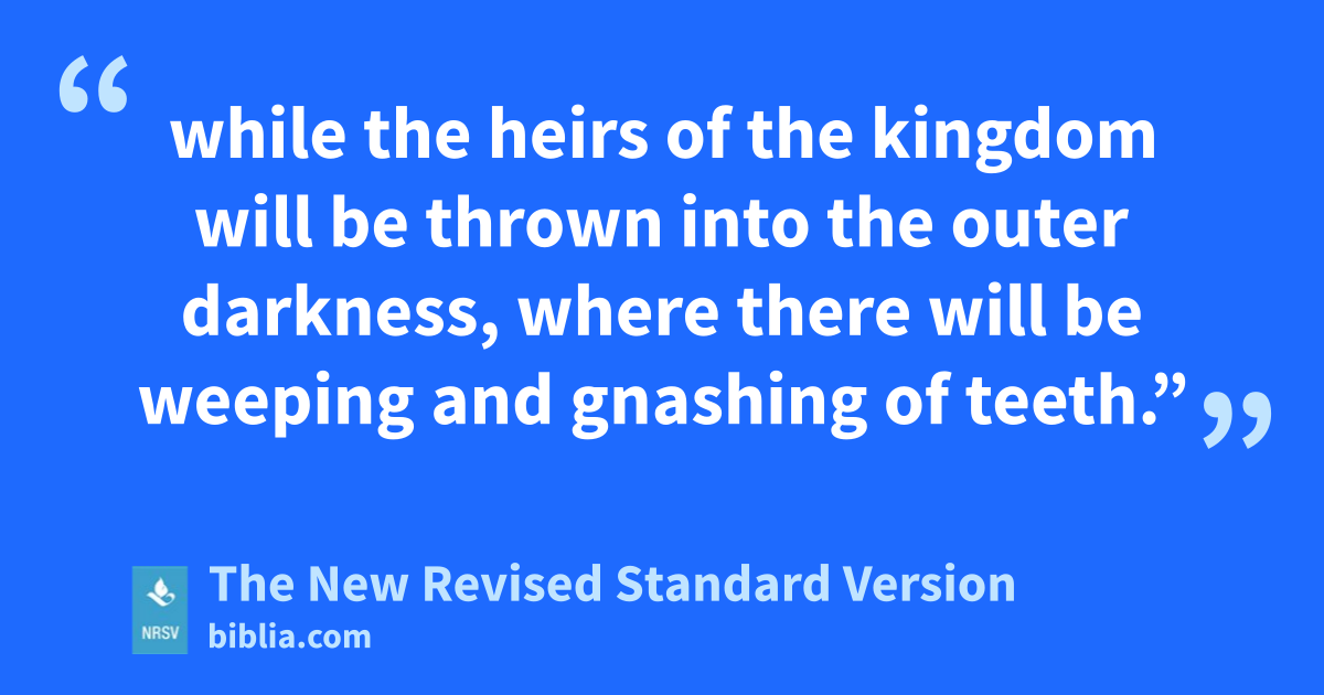 while the heirs of the kingdom will be thrown into the outer darkness, where there will be weeping and gnashing of teeth.”