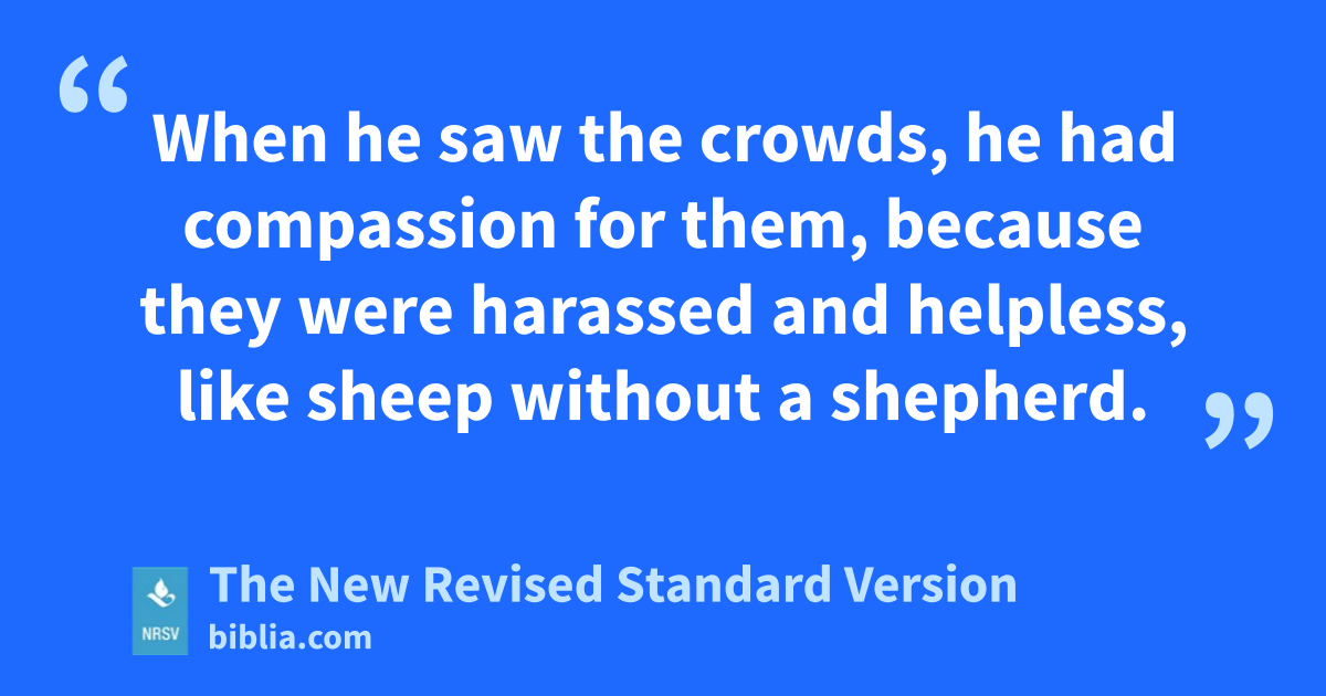 When he saw the crowds, he had compassion for them, because they were harassed and helpless, like sheep without a shepherd.