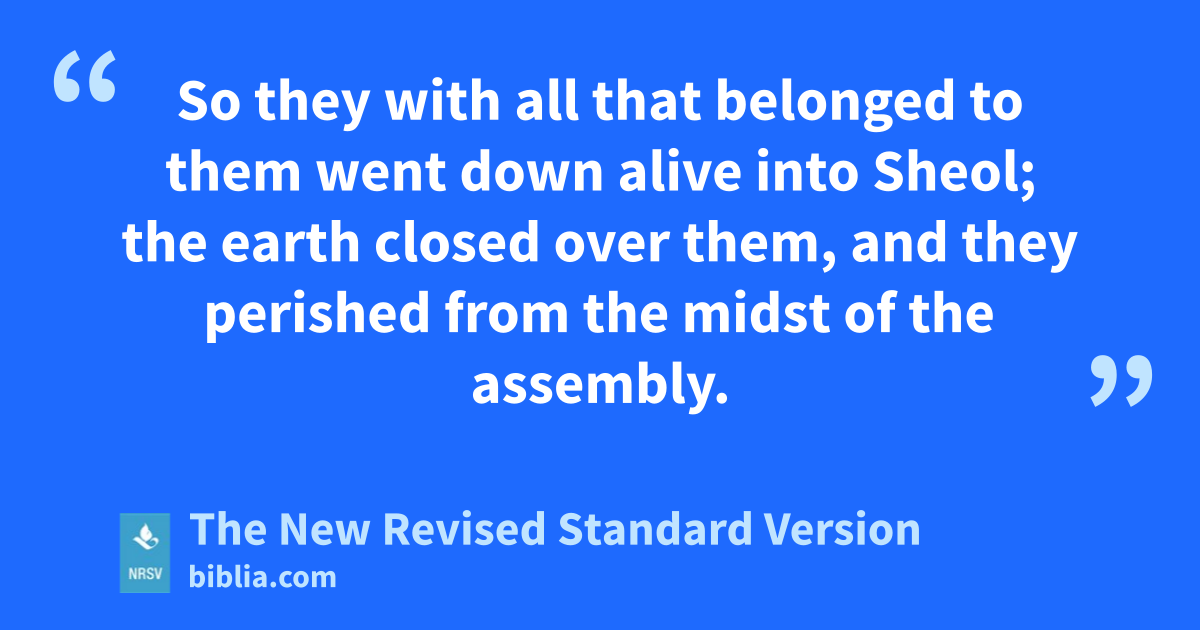 So they with all that belonged to them went down alive into Sheol; the earth closed over them, and they perished from the midst of the assembly.