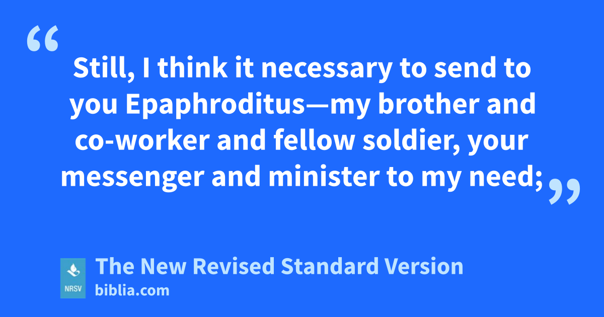 Still, I think it necessary to send to you Epaphroditus—my brother and co-worker and fellow soldier, your messenger and minister to my need;
