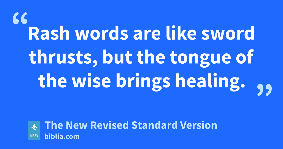 Rash words are like sword thrusts, but the tongue of the wise brings healing.