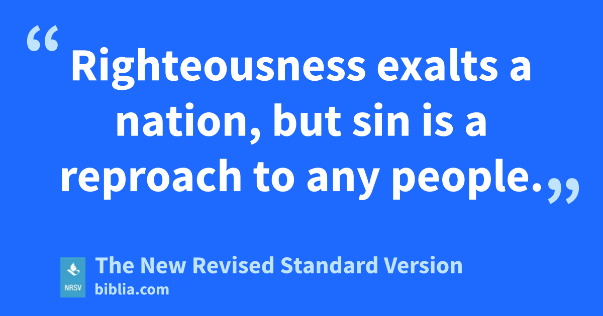 Righteousness exalts a nation, but sin is a reproach to any people.