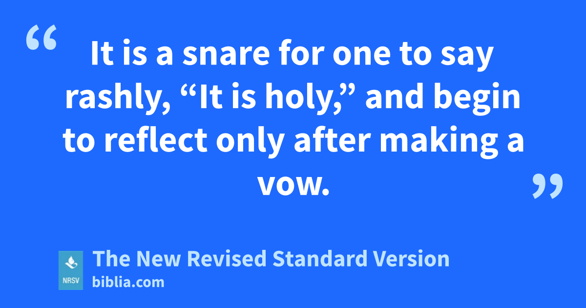 It is a snare for one to say rashly, “It is holy,” and begin to reflect only after making a vow.