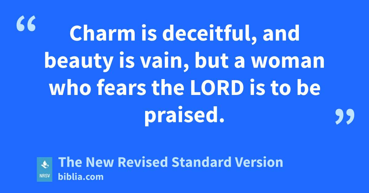 Charm is deceitful, and beauty is vain, but a woman who fears the LORD is to be praised.