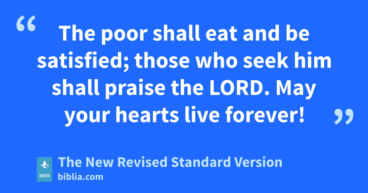 The poor shall eat and be satisfied; those who seek him shall praise the LORD. May your hearts live forever!