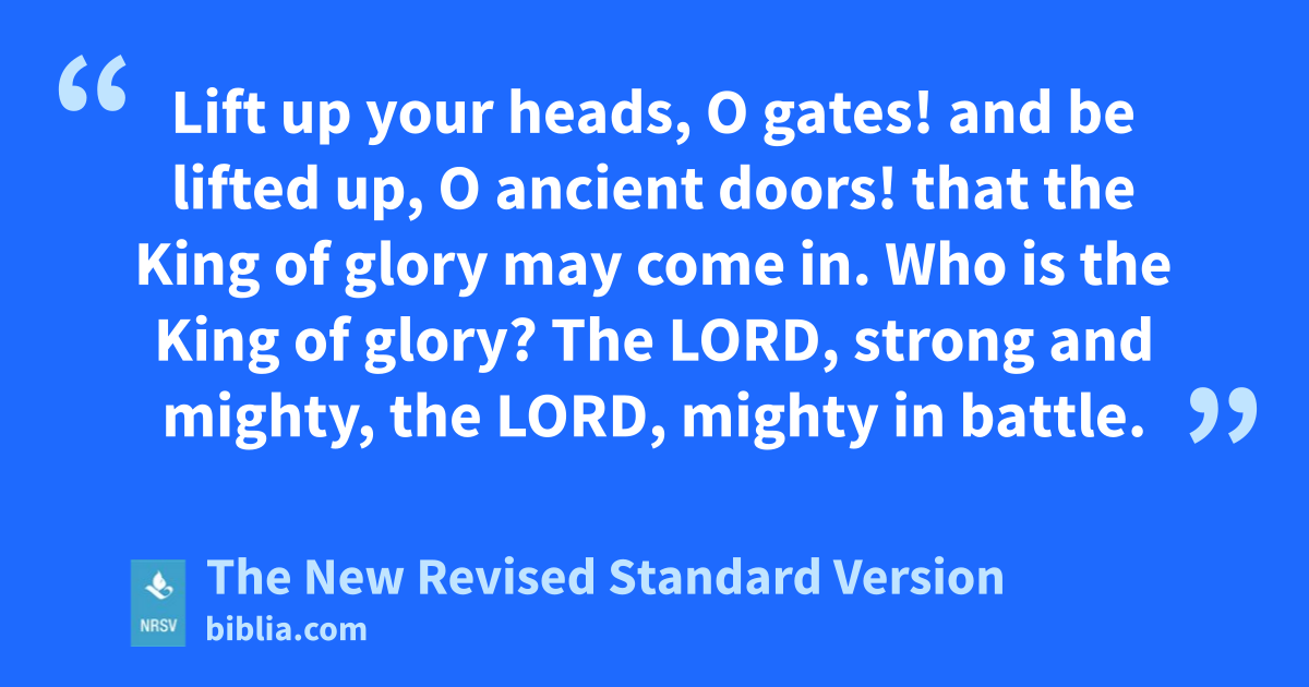 Lift up your heads, O gates! and be lifted up, O ancient doors! that the King of glory may come in. Who is the King of glory? The LORD, strong and mighty, the LORD, mighty in battle.