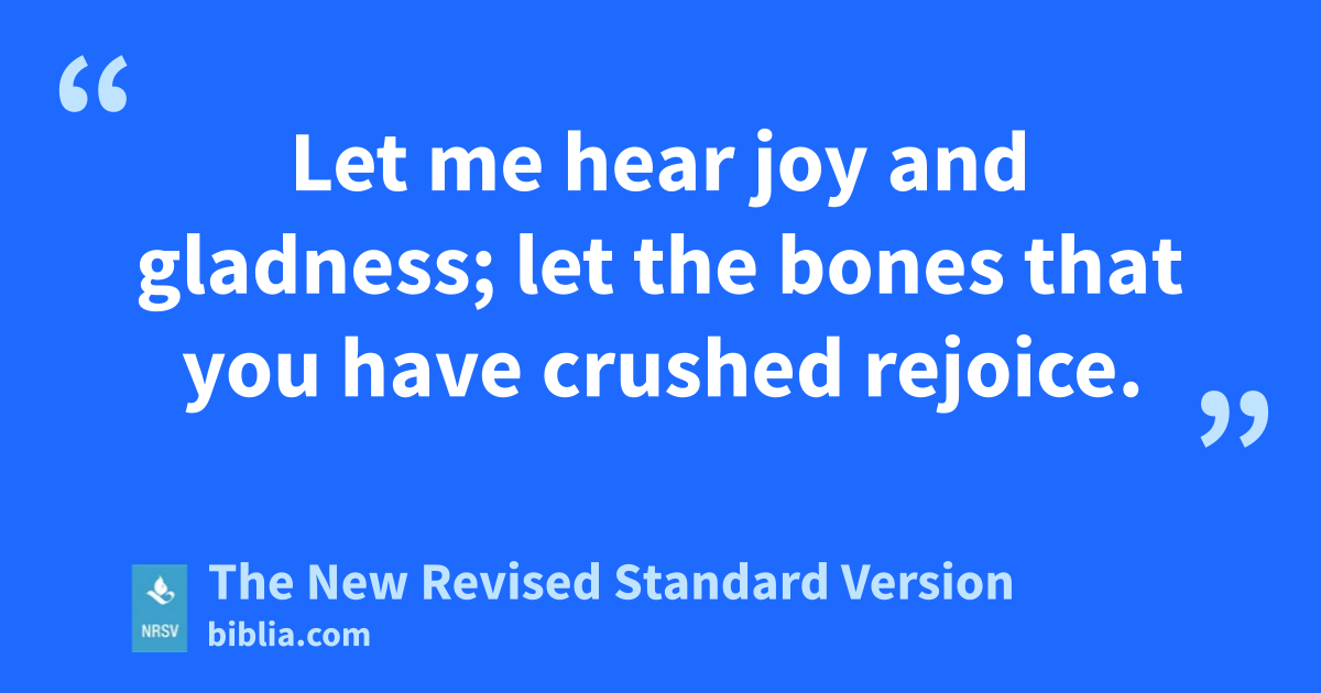 Let me hear joy and gladness; let the bones that you have crushed rejoice.
