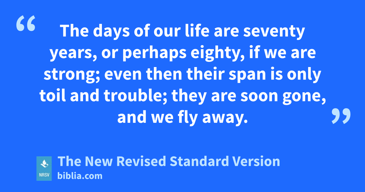 The days of our life are seventy years, or perhaps eighty, if we are strong; even then their span is only toil and trouble; they are soon gone, and we fly away.