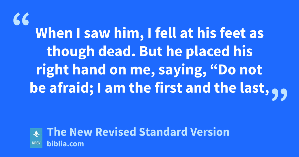 When I saw him, I fell at his feet as though dead. But he placed his right hand on me, saying, “Do not be afraid; I am the first and the last,