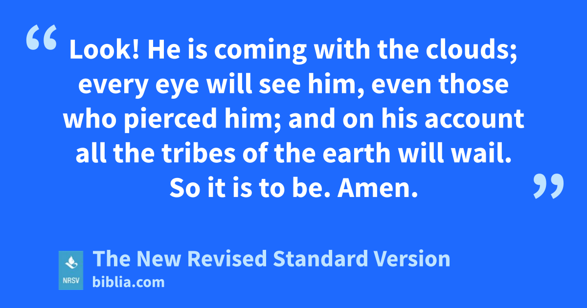Look! He is coming with the clouds; every eye will see him, even those who pierced him; and on his account all the tribes of the earth will wail. So it is to be. Amen.