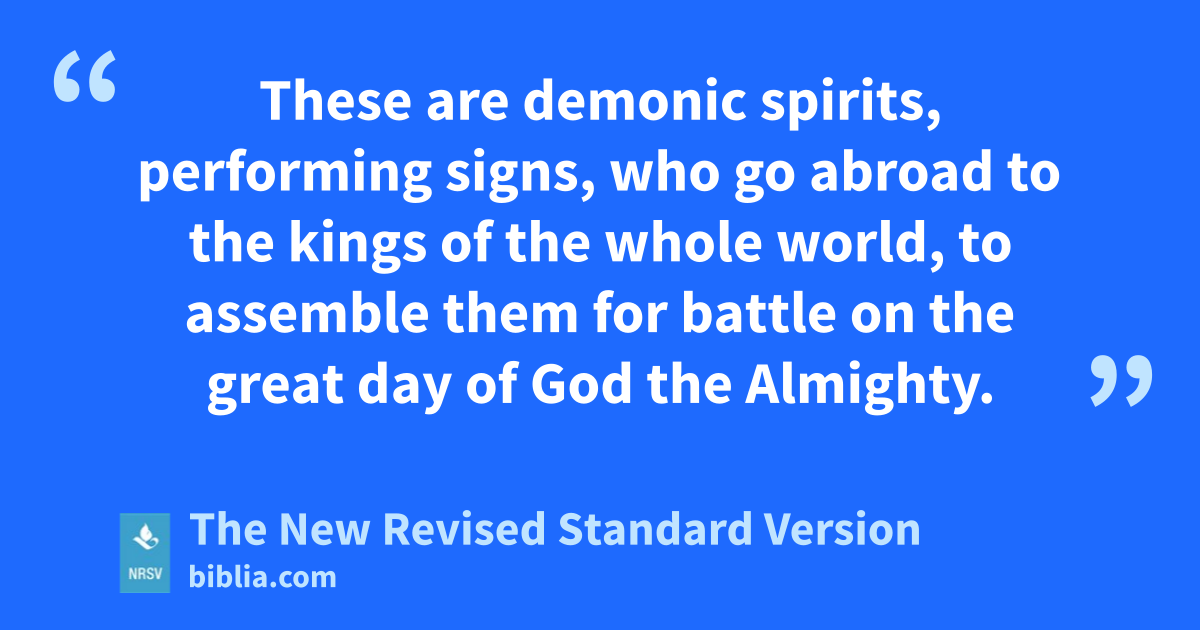These are demonic spirits, performing signs, who go abroad to the kings of the whole world, to assemble them for battle on the great day of God the Almighty.