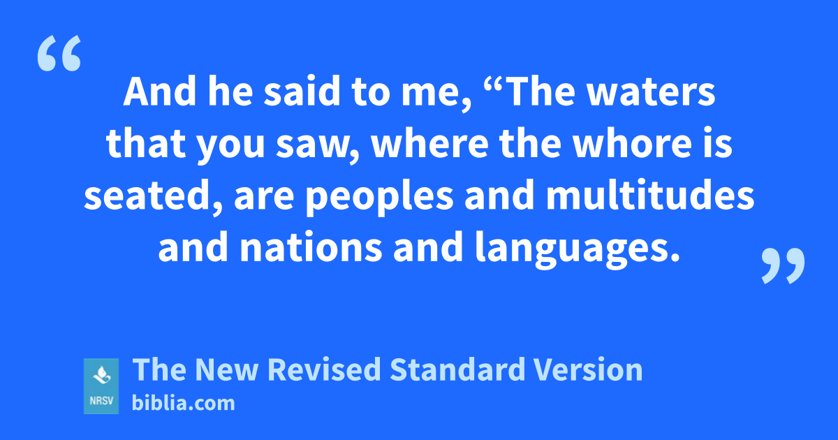 And he said to me, “The waters that you saw, where the whore is seated, are peoples and multitudes and nations and languages.