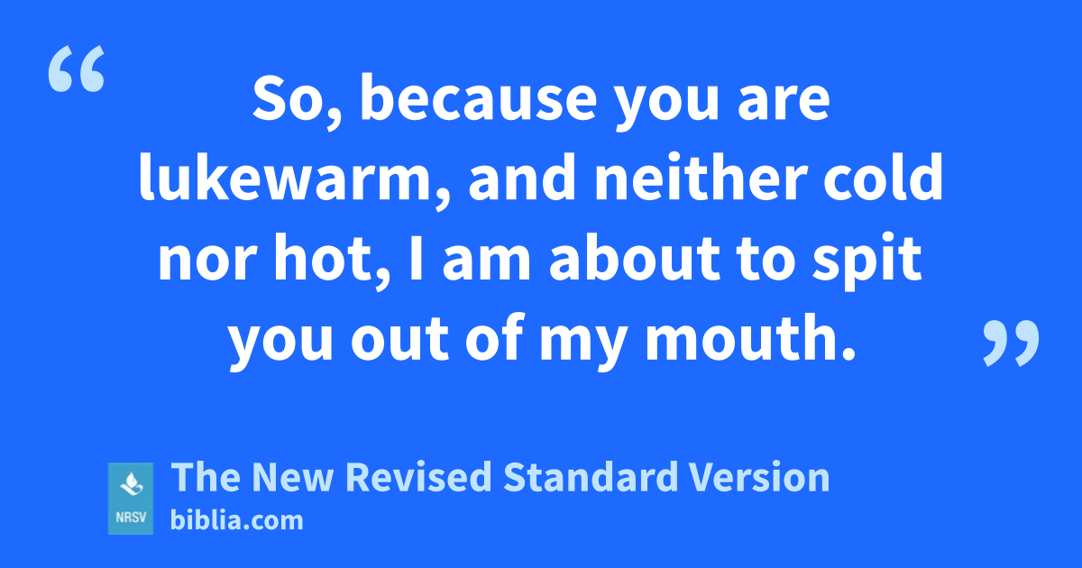So, because you are lukewarm, and neither cold nor hot, I am about to spit you out of my mouth.