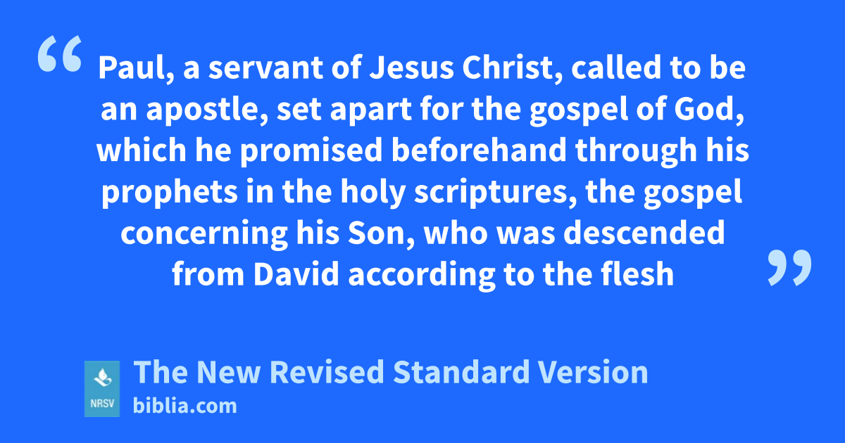 Paul, a servant of Jesus Christ, called to be an apostle, set apart for the gospel of God, which he promised beforehand through his prophets in the holy scriptures, the gospel concerning his Son, who was descended from David according to the flesh