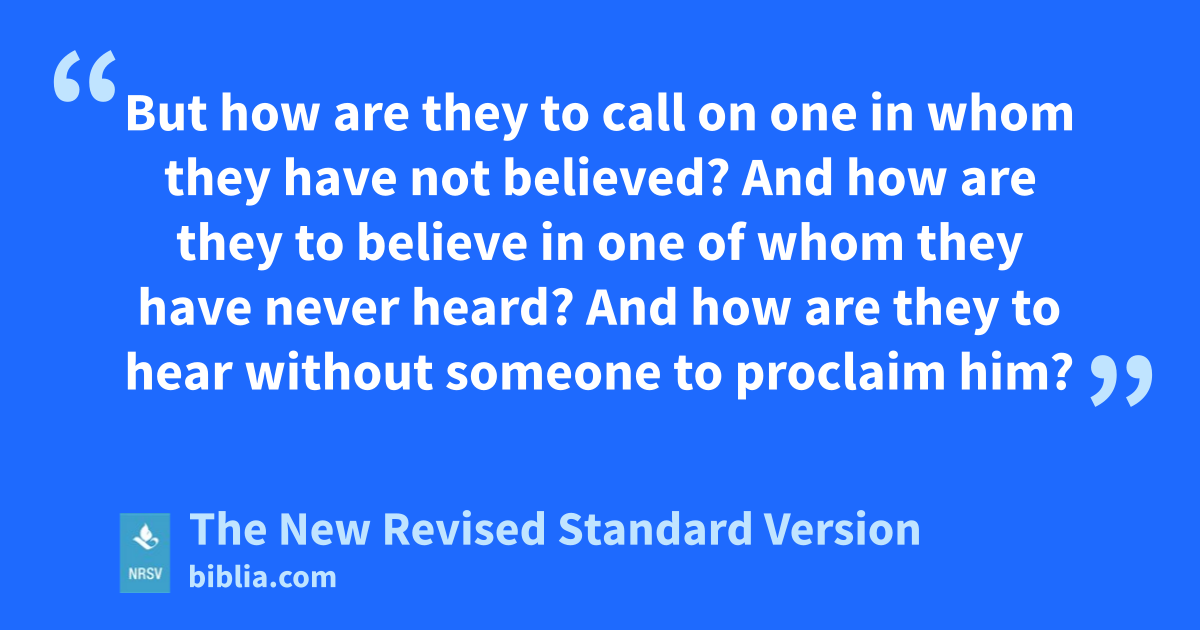 But how are they to call on one in whom they have not believed? And how are they to believe in one of whom they have never heard? And how are they to hear without someone to proclaim him?